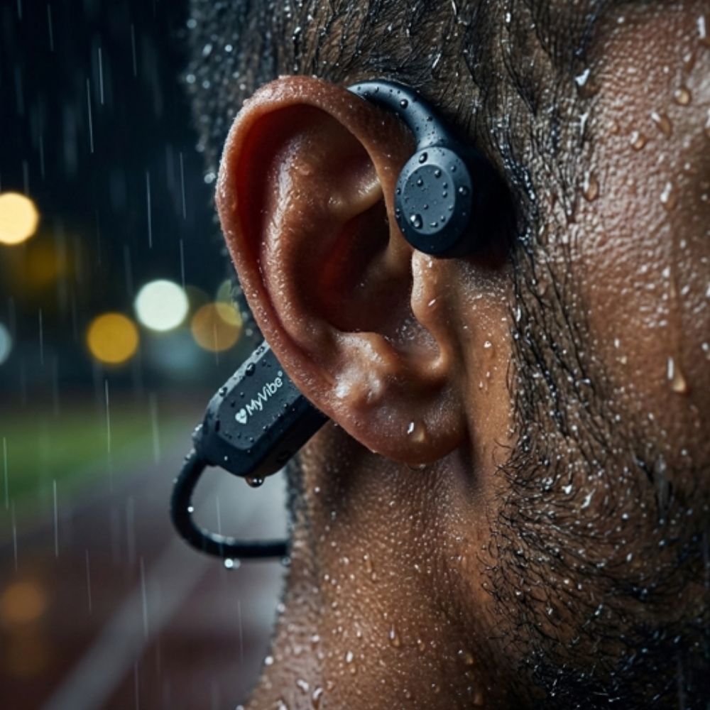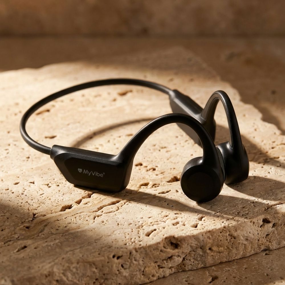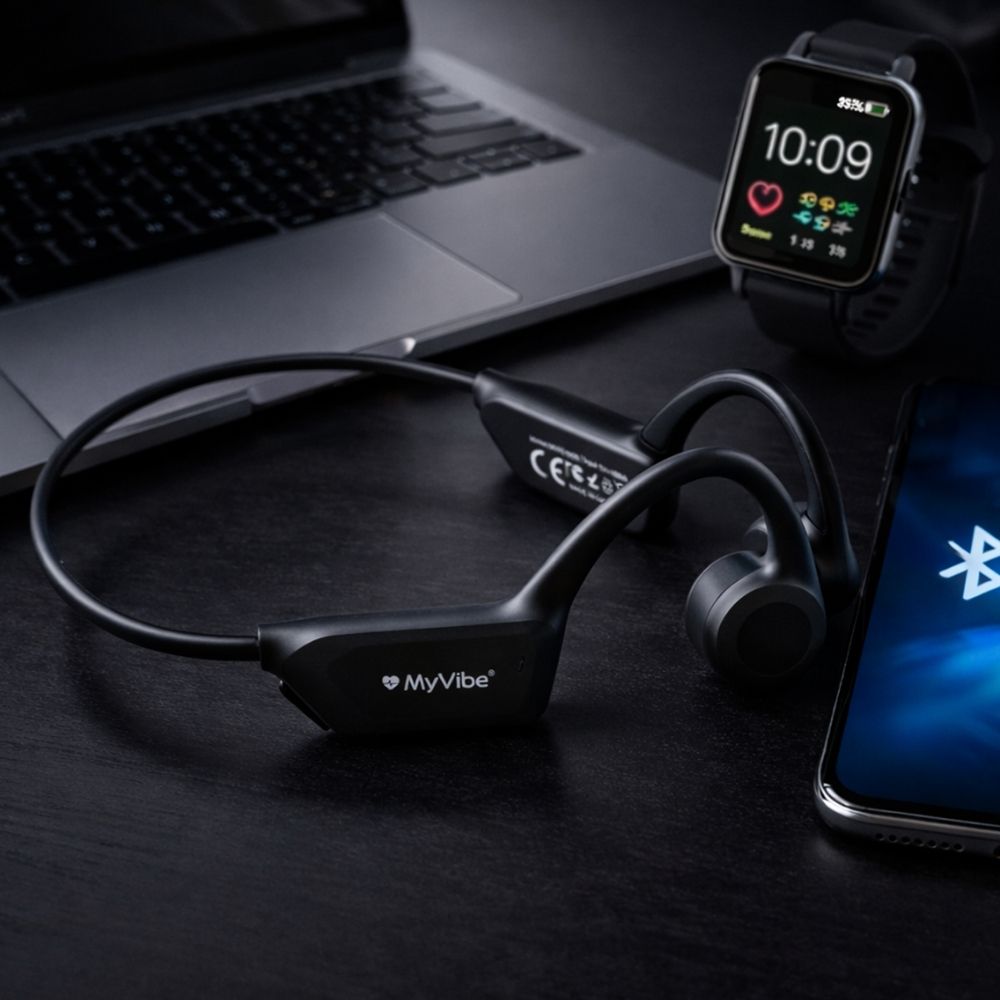 Entrez dans l'ère de l'électro sport avec le MyVibe "Is Good". Conçu pour ceux qui refusent de choisir entre musique et sécurité, ce casque à conduction osseuse redéfinit votre expérience de course à pied, de vélo et de fitness.
